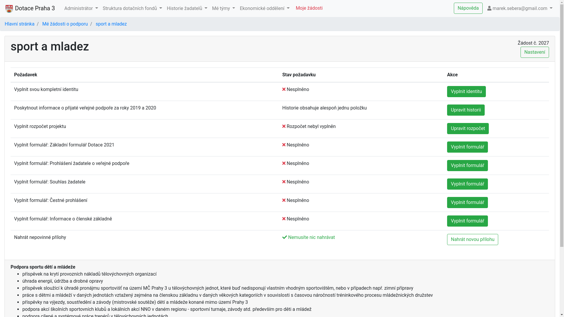• Trvalý přístup ke všem aktuálním i historickým, rozpracovaným i odeslaným žádostem.