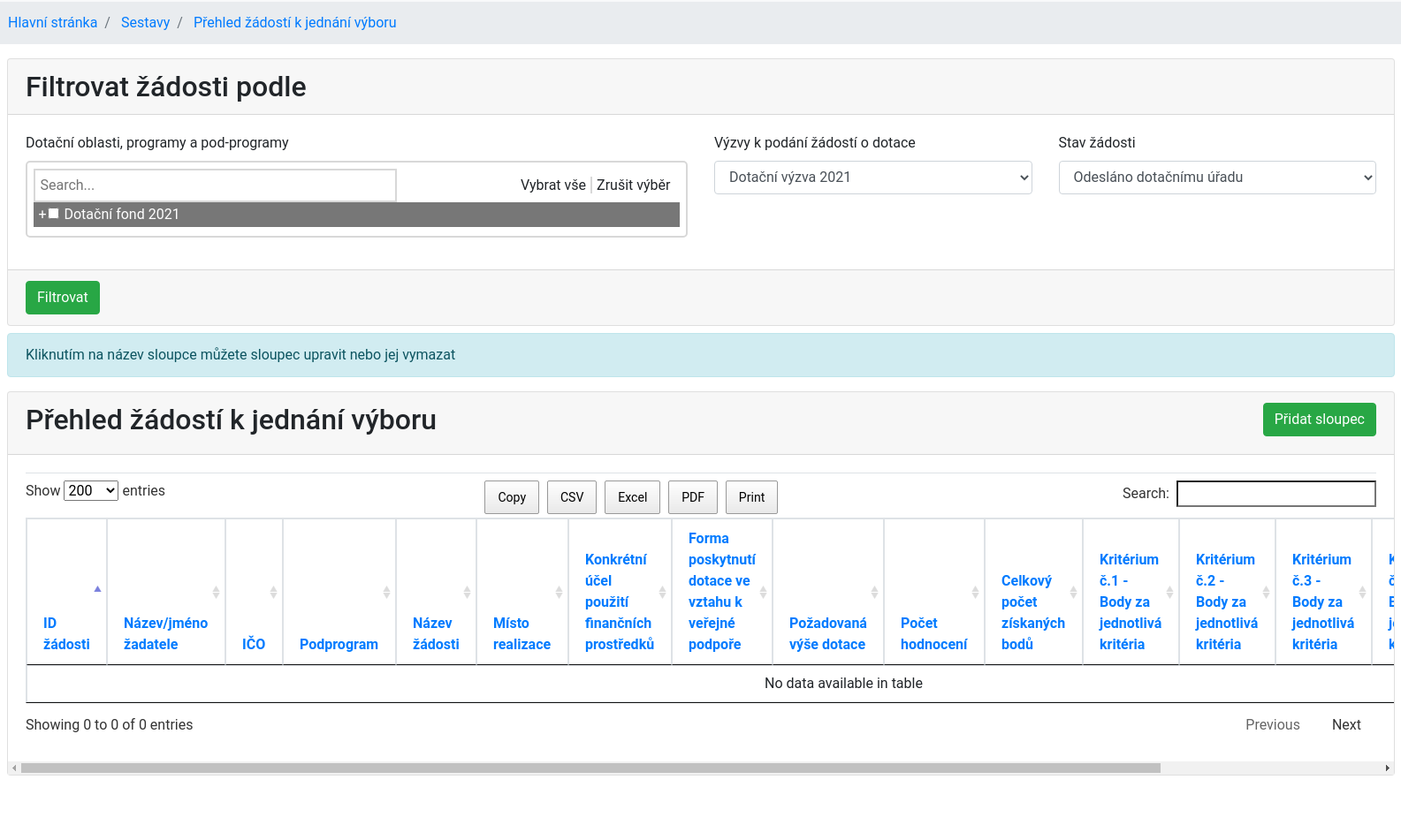 • Možnost zveřejní seznamu všech poskytnutých dotací.