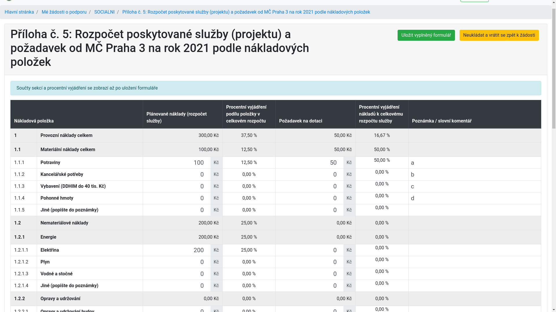 Hodnocení žádosti Nepovinný Tým: Hodnocení Žádostí Pokud chcete, můžete v jednotlivých programech žádosti hodnotit dle stanovených bodových kritérií, výsledek hodnocení pak může být podkladem pro další jednání dotačních orgánů.